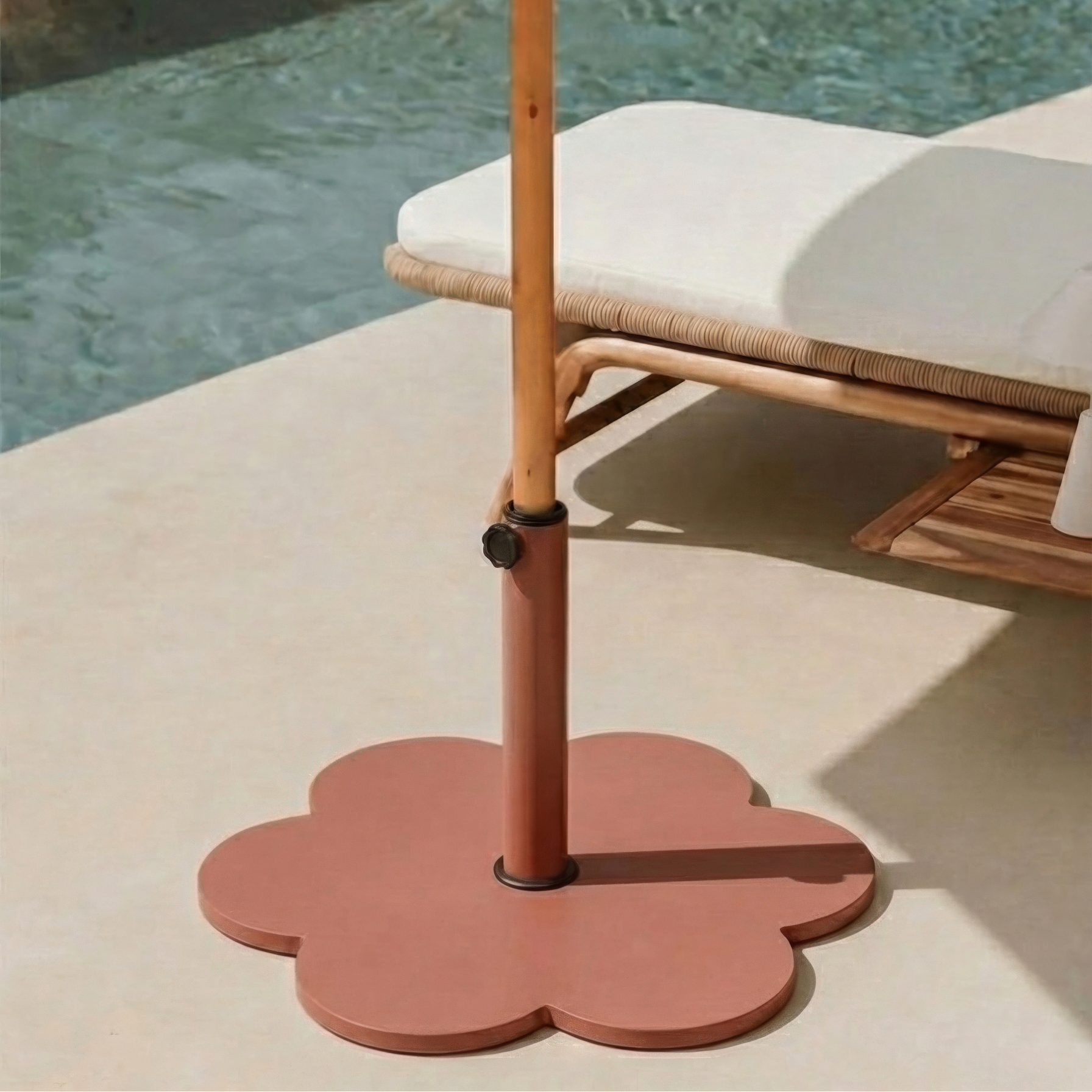 Eindelijk een parasolvoet die niet alleen praktisch is, maar er ook mooi uitziet! Deze unieke voet in bloemvorm is een echte blikvanger voor in je tuin. Met een gewicht van 25 kg staat je parasol stevig en stabiel. Het ontwerp is zorgvuldig ontwikkeld zodat onze parasols er perfect in passen. Dankzij de drie meegeleverde adapters is de voet ook geschikt voor andere parasols met verschillende stokdiktes. De kleur van de voet is een perfecte match met onze terracotta parasol, maar combineert ook prachtig met onze andere parasols.